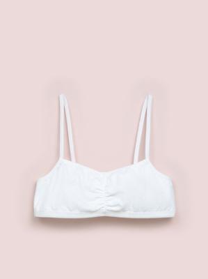 Короткий трикотажный топ на бретелях. Выполнен из хлопкосодержащей ткани, которая не вызывает раздражений и приятна к телу. Эластан в составе отвечает за форму и делает изделие быстросохнущим и немнущимся. Спереди топ присборен для большего комфорта. Тонкие бретели в цвет не регулируются. Представлен в цветах: черный, белый Состав ткани: хлопок - 95%, эластан - 5%.Дополнительно