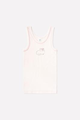 Майка на лямках из натурального хлопка. Сшита из эластичного материала рибана пенье. Украшена набивным рисунком и принтом.Дополнительно