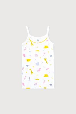 Майка на бретелях из натурального хлопка. Сшита из эластичного материала рибана пенье. Украшена набивным рисунком и милым бантиком.Дополнительно