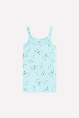 Майка на бретелях из натурального хлопка. Сшита из эластичного материала рибана пенье. Украшена набивным рисунком и милым бантиком.Дополнительно