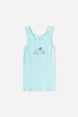 Майка на лямках из натурального хлопка. Сшита из эластичного материала рибана пенье. Украшена принтом.Дополнительно