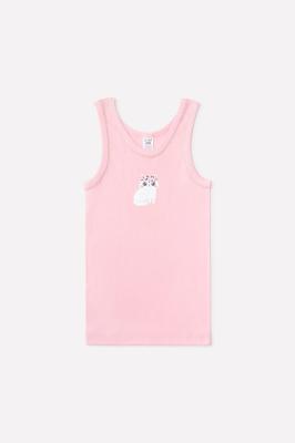 Майка на лямках из натурального хлопка. Сшита из эластичного материала рибана пенье. Украшена набивным рисунком и принтом.Дополнительно