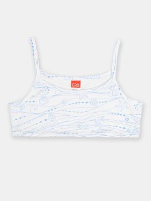 Бюстье из набивного полотна на бретелях из основного полотна. Верхние и нижние срезы переда и спинки окантованы бейкой из основного полотна.Дополнительно