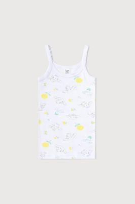 Майка на бретелях из натурального хлопка. Сшита из эластичного материала рибана пенье. Украшена набивным рисунком.Дополнительно