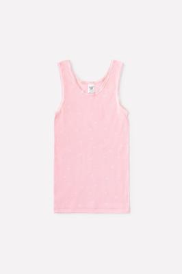 Майка на лямках из натурального хлопка. Сшита из эластичного материала рибана пенье. Украшена набивным рисунком.Дополнительно