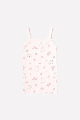 Майка на бретелях из натурального хлопка. Сшита из эластичного материала рибана пенье. Украшена набивным рисунком и милым бантиком.Дополнительно