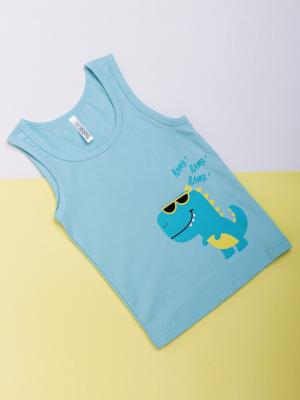 Майка для мальчика голубая с принтом в виде динозавра трикотажная из супрема пенье. Майка из хлопка, прямого кроя, на широких лямках идеально садится по фигуре, мягко облегает, хорошо тянется и держит форму. Яркие цвета создадут хорошее настроение ребенку на весь день.Дополнительно