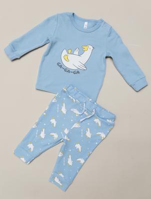 Пижама для мальчика трикотажная голубая из натурального хлопка: джемпер и штанишки. Идеальный вариант для малышей и новорожденных. Этот теплый комплект состоит из кофточки с длинными рукавами и брюк на резинке. Комплект украшен принтом в виде гусей.Дополнительно