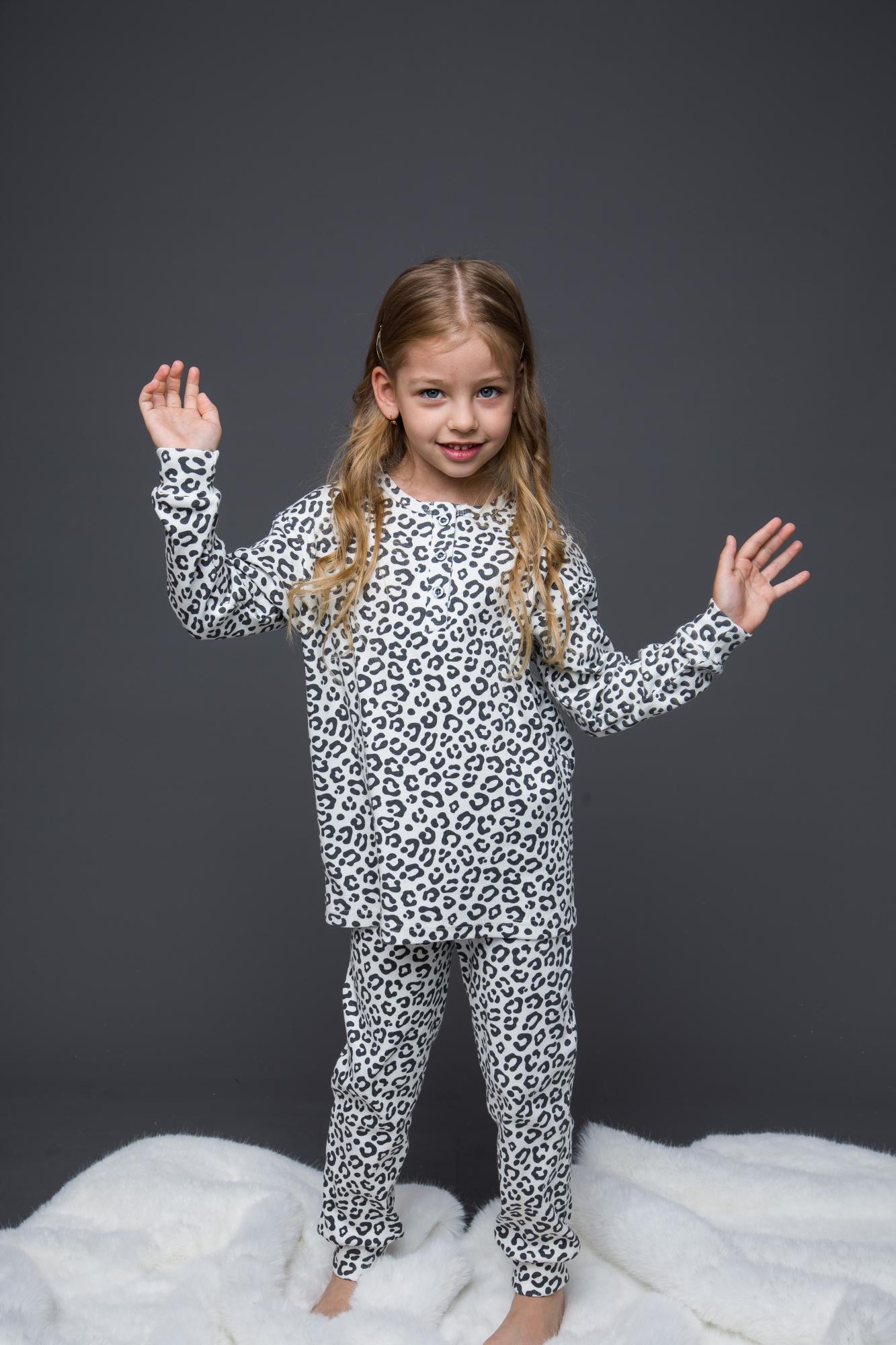 Комплект пижамный для девочки из кашкорсе: футболка с длинным рукавом и брюки. Мягкий и нежный комплект в бежевом цвете с леопардовым принтом. Подойдет для повседневной носки в любое время года, как дома, так и в путешествиях.Дополнительно