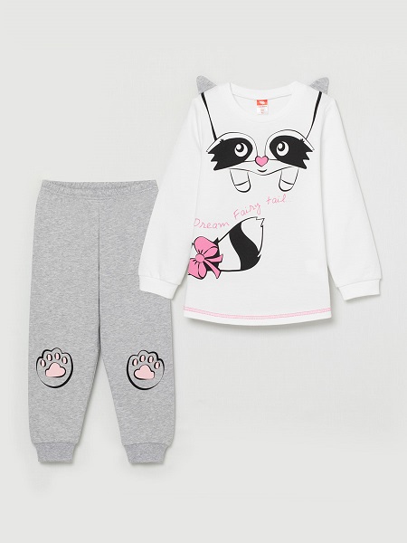 Джемпер с длинными рукавами и круглой горловиной. Рукава втачные, с манжетами из эластичного полотна по низу. Горловина обработана воротником из эластичного полотна. Спереди джемпер декорирован принтом и вставленными в плечевые швы "ушками" из полотна контрастного цвета. Брюки прямые, с манжетами из эластичного полотна по низу. На талии брюки собраны на резинку. В области колен брюки декорированы принтом.Дополнительно