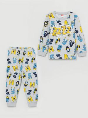 Джемпер из набивного полотна с длинными рукавами. Рукава втачные, с манжетами по низу. Горловина круглая, обработана воротником из полотна с эластаном. Брюки из набивного полотна с манжетами. По талии брюки собраны на резинку. Джемпер декорирован принтом.Дополнительно