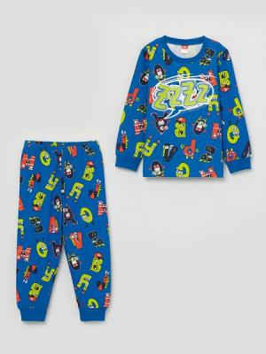 Джемпер из набивного полотна с длинными рукавами. Рукава втачные, с манжетами по низу. Горловина круглая, обработана воротником из полотна с эластаном. Брюки из набивного полотна с манжетами. По талии брюки собраны на резинку. Джемпер декорирован принтом.Дополнительно