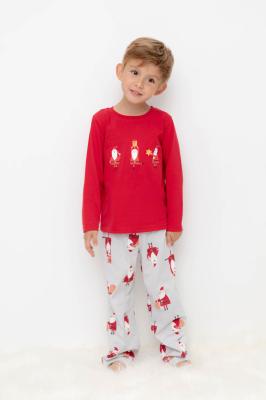 Трикотажный пижамный комплект из натурального хлопка. У джемпера длинные втачные рукава и эластичная мягкая горловина. Брюки с удобным поясом на резинке. Оригинальная набивка и принт выполнены из стойких, гипоаллергенных текстильных красителей. Все трикотажные полотна производятся в соответствии с нормами Швейцарского сертификата ЭкоТекс.Дополнительно