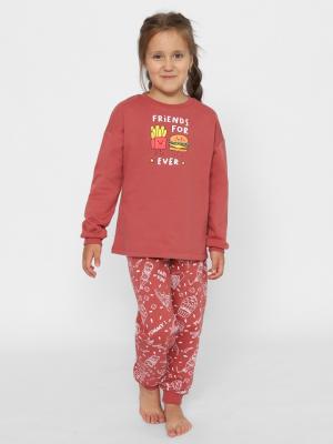 Легкая, мягкая и приятная к телу пижама выполнена из гипоаллергенного трикотажа с начесом. Воздухопроницаемая ткань обеспечивает оптимальную терморегуляцию. Джемпер со спущенным плечом, длинными рукавами и эластичными манжетами. Перед декорирован милым принтом (надпись: Друзья для каждого). Штанишки для девочки, из набивного полотна, в составе комплекта для дома снабжены удобной резинкой-поясом, не сдавливающей живот. Пижама с длинным рукавом имеет комфортные манжеты - на рукавах и штанинах. Мягкая пижама имеет оптимальную посадку, нигде не сдавливает и не доставляет никакого дискомфорта.Дополнительно