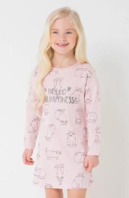 Сорочка для девочки из трикотажа супрем с набивным рисунком. Длинные рукава со спущенным плечом. Спереди принт с блестками.Дополнительно