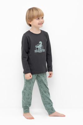 Трикотажная пижама из натурального хлопка. Джемпер с длинными рукавами. У брюк эластичный пояс на резинке, эластичные манжеты. Оригинальные принт и набивка выполнены из стойких, гипоаллергенных текстильных красителей. Пижама сохраняет цвет и форму после многократных стирок. Все трикотажные полотна производятся в соответсвии с нормами Швейцарского сертификата ЭкоТекс.Дополнительно