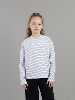 Джемпер свободного силуэта для девочки со спущенным плечом и длинными рукавами из рингельного полотна в изящную полоску. Воротник из основного полотна. На спинке декоративная жаккардовая этикетка.Дополнительно