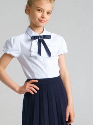 Блузка текстильная с высоким содержанием хлопка. Рукава фонарики. Потайная застежка на пуговицы. Декор: бант с жабо. Полуприлегающий силуэт.Дополнительно