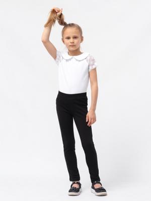 Джемпер для девочки с короткими рукавами-реглан. Горловина обработана обтачным фигурным воротником из основного полотна. В верхней части спинки обработана застежка "капелька". Рукава выполнены из эластичного кружева с фигурным краем.Дополнительно