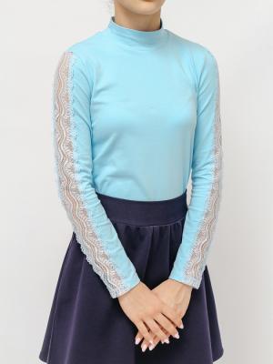 Водолазка для девочки длинными рукавами и воротником-стойкой. Рукава со вставками из эластичного кружева.Дополнительно