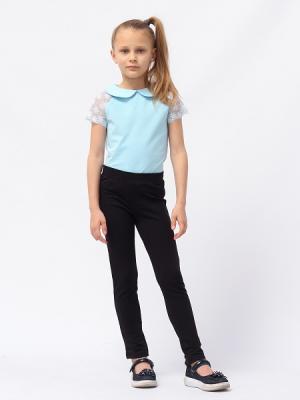 Джемпер для девочки с короткими рукавами-реглан. Горловина обработана обтачным фигурным воротником из основного полотна. В верхней части спинки обработана застежка "капелька". Рукава выполнены из эластичного кружева с фигурным краем.Дополнительно