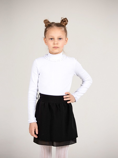 Водолазка из кашкорсе с эластаном. Модель с длинными рукавами и воротником-стойкой. По шву притачивания воротника и шву подшивки низа рукава эластичной строчкой настрочены рюши из основного полотна. Края рюши обработаны микрооверлоком.Дополнительно