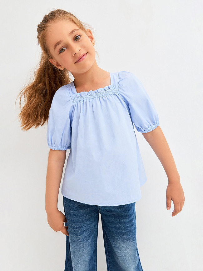 20220270065, Блузка детская для девочек Bulgaria голубой