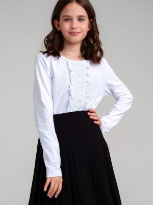 Джемпер трикотажный полуприлегающего силуэта. Декорирован кружевом. Высокое содержание хлопка 95%. Благодаря наличию эластана в составе ткани изделие проще в уходе и держит форму.Дополнительно