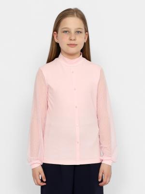 Водолазка для девочки с длинными рукавами и воротником-стойкой. Рукава из сетки с манжетами из кулирки. Полочка с иммитацией застежки на пуговицы.Дополнительно