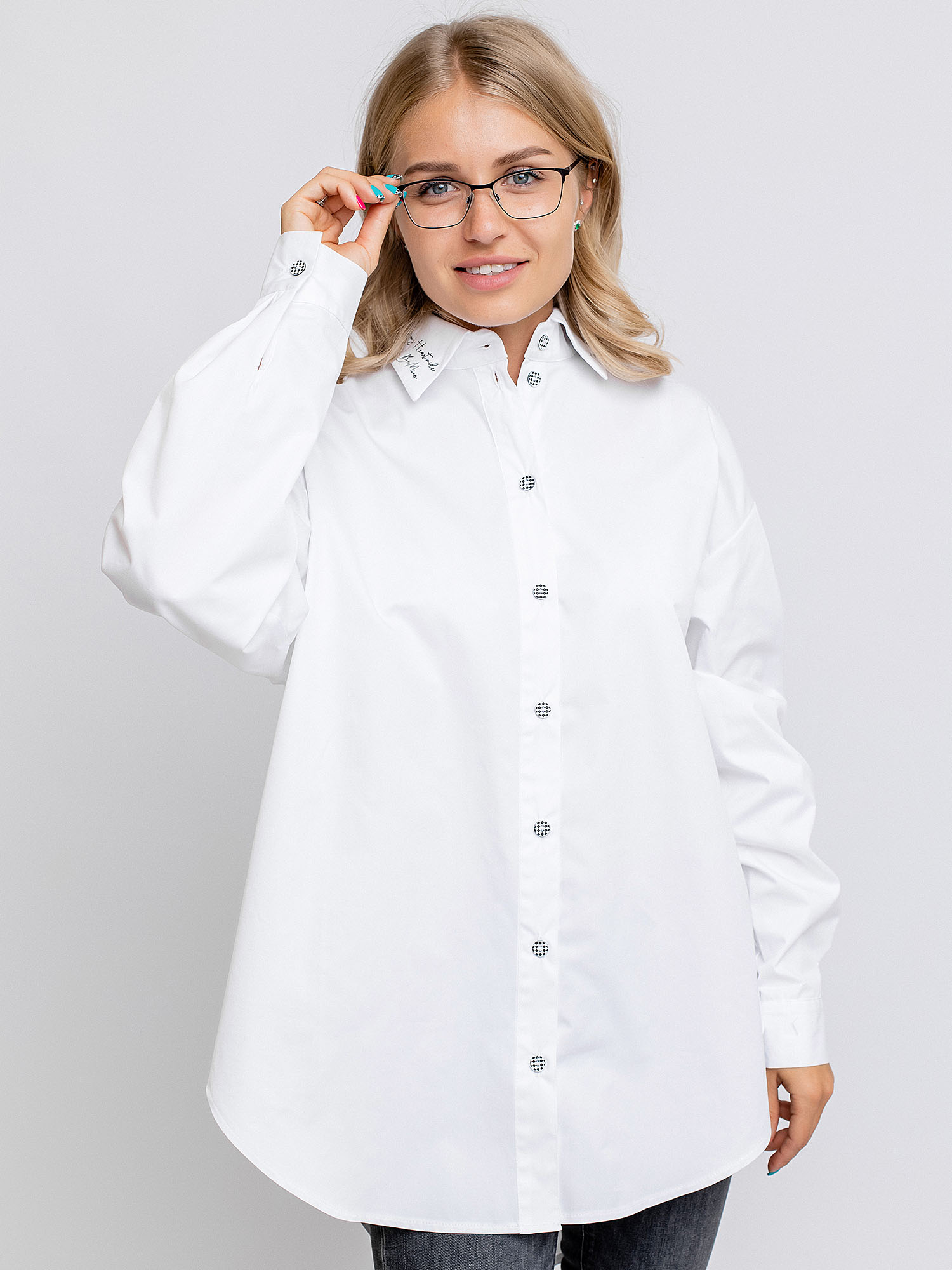 Блузка для девочки с длинными рукавами и термотрансфером на воротнике. Застежка на петли пуговицыДополнительно
