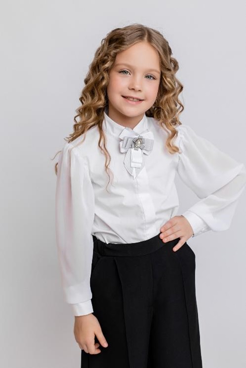 Блузка для девочки со съемным бантом на булавке. Прозрачные длинные рукава из шифона.Дополнительно