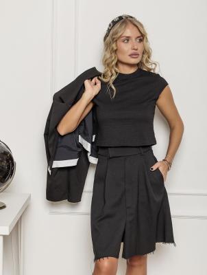 Юбка из костюмной ткани, с хлястиками по бокам котрые позволяют изменить посадку по талии. Спереди боковые карманы и складки. Застежка "гульфик". Нижний срез не обработан.Дополнительно