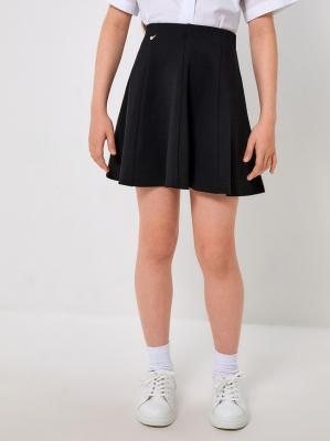 Классическая юбка из клиньев для девочки сшита из плотного трикотажа с высоким содержанием вискозы. Мягкий, воздухопроницаемый и эластичный материал, за которым просто ухаживать, удобен в ношении и хорошо подходит для школьных будней. Пояс на резинке обеспечит качественную посадку на любой тип фигуры. Спереди, у пояса, юбка декорирована пришивной эмалированной подвеской.Комбинируйте с белой блузкой (20240260148) и гольфами. Сдержанная и стильная, юбка также с легкостью станет частью школьной формы.Модель представлена в трёх базовых цветах: черном, сером и темно-синемДополнительно