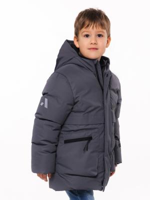 Комфортная куртка на утеплителе из искусственного пуха. Ткань мембранная. Подкладка – флис. Прямой силуэт. Функциональные потайные стежки. На полочках и спинке куртки декоративная склада. Два объемных накладных кармана с реверсивными молниями. Внутренний карман молнии. Фронтальная молния закрыта ветрозащитной планкой, планка застегивается на потайные кнопки. Вся фурнитура лаконичного черного цвета. Куртка дополнена бретелями «свободные руки», что очень актуально для мальчиков. Внутренние трикотажные манжеты. Капюшон несъемный. Регулировка капюшона по лицевому срезу выполнена с помощью шнура-резинки и фиксаторов. В верхней части левой полочки и спинки, на правом рукаве – термопринт.Дополнительно