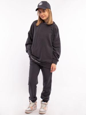 Брюки для девочки в графитовой расцветке спортивные из футера. Брюки зауженного кроя произведены из хлопка 90% и полиэстера 10%. Однотонные брюки для детей и подростков на удобной резинке.Дополнительно