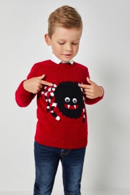 Красный джемпер для мальчика, украшенный вышивкой в виде забавного паука, выполнен из гигроскопичного, воздухопроницаемого, эластичного, приятного к телу, прочного, износоустойчивого и несминаемого материала.Дополнительно