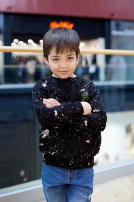 Стильный свитшот-пуловер для мальчика с космическим принтом. Классический черный свитшот из мягкого футера. Удобная модель с круглой горловиной и свободным кроем для активных движений.Плотный качественный футер для комфорта в прохладную погоду. Натуральный хлопок обеспечивает комфортный теплообмен. Подходит для школы, прогулок и активных игр.