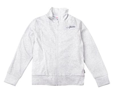 Жакет для девочки из однотонного или меланжевого супрема, длинные втачные рукава с манжетами, застёжка на замке-молния, воротник высокая стойка, на полочке кокетка и рельефы с узким втачным кантом отделочного цвета, внутреннние карманы в боковых швах. По низу притачной пояс, печать на спинке и на кокетке полочки.Дополнительно