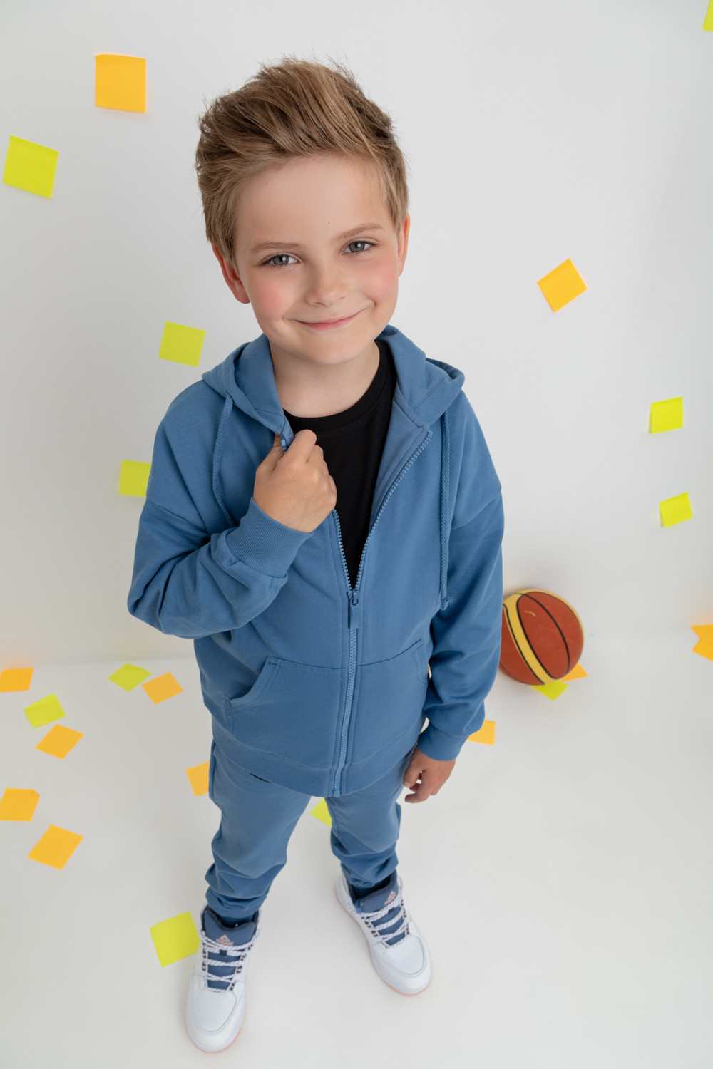Трикотажная куртка для мальчика из петельчатого футера. Спереди удобные накладные карманы. Манжеты и пояс из эластичного трикотажа в рубчик.Дополнительно
