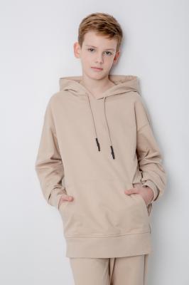 Толстовка с капюшоном из петельчатого футера, произведенного из натурального хлопка. У изделия спущенные плечи, карман-кенгуру, манжеты и пояс из кашкорсе. Толстовка сохраняет цвет и форму после многократных стирок.Все трикотажные полотна производятся в соответствии с нормами Швейцарского сертификата ЭкоТекс.