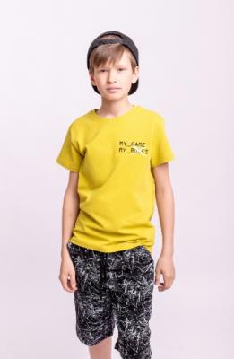 Футболка для мальчика прямого кроя с принтом, воротом кашкорсе.Дополнительно