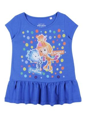 Туника из кулирной глади. Горловина обработана притачной бейкой из основного полотна. Рукав втачной, короткий. Перед декорирован принтом. По низу притачная оборка.Дополнительно