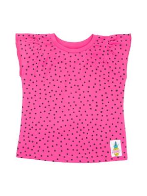 Футболка для девочки с короткими рукавами "крылышками" из полотна с набивкой. На нижнюю часть настрочена жаккардовая этикетка.Дополнительно