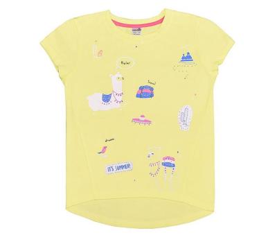 Фуфайка для девочки из однотонного супрема, короткие втачные рукава, по горловине обтачка, боковые швы смещены на полочку, печать на полочке. Низ спинки оформлен длиннее полочки. В размерах 52/92 и 56/98 застёжка на 2 кнопки в плече.Дополнительно