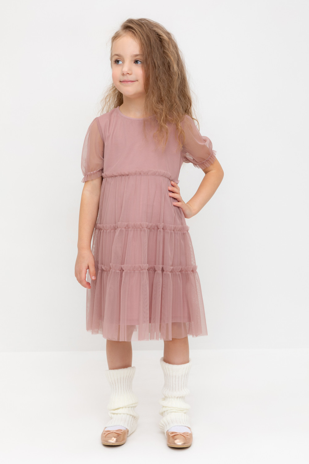 Нарядное платье для девочки из высококачественного трикотажа супрем с лёгким слоем из сетки. Короткие рукава из сетки собраны на резинку. Для удобства одевания платье застёгивается на пуговицу на спинке. Платье сохраняет форму и стойкий цвет после многочисленных стирок и идеально подходит для праздников и фотосессий.Дополнительно