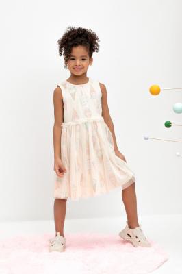 Нарядное летнее платье для девочки с подкладом из трикотажного полотна. Верх изделия выполнен из сетки.Дополнительно