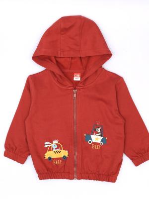 Толстовка для мальчика свободного силуэта из мягкого трикотажа. Капюшон без подкладки. На левой полочках выполнена шелкография - животные в машинах. Надпись на английском - биип. Пуллер из экстрафоорной тесьмы контрастного цвета.Дополнительно
