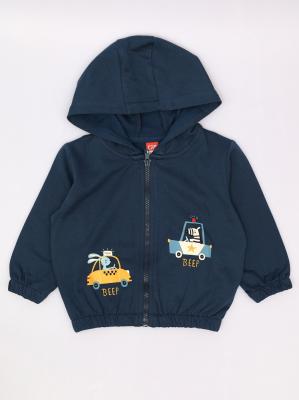 Толстовка для мальчика свободного силуэта из мягкого трикотажа. Капюшон без подкладки. На левой полочках выполнена шелкография - животные в машинах. Надпись на английском - биип. Пуллер из экстрафоорной тесьмы контрастного цвета.Дополнительно