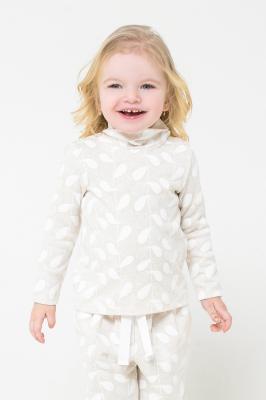 Водолазка для девочки из хлопкового трикотажа интерлок с набивным рисунком. Длинные рукава. Высокая горловина с отворотом из основного полотна. В области плеча застежка на кнопки-ободок.Дополнительно