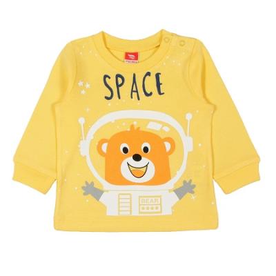 Джемпер с длинным рукавом и застежкой на кнопки в плечевом шве из мягкого интерлока. Притачная бейка горловины и манжета рукава из рибаны с эластаном. Перед декорирован милым принтом.Дополнительно